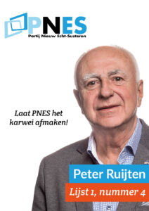 De afgelopen raadsperiode heeft PNES deel uitgemaakt van de coalitie en een bijdrage geleverd aan het bestuur van onze gemeente. Mede dankzij PNES heeft onze gemeente de afgelopen jaren een zeer stabiel gemeentebestuur gehad. Met een enthousiast en deskundig team hebben we vol ambitie gewerkt aan een mooiere, betere en welvarendere gemeente Echt-Susteren.
